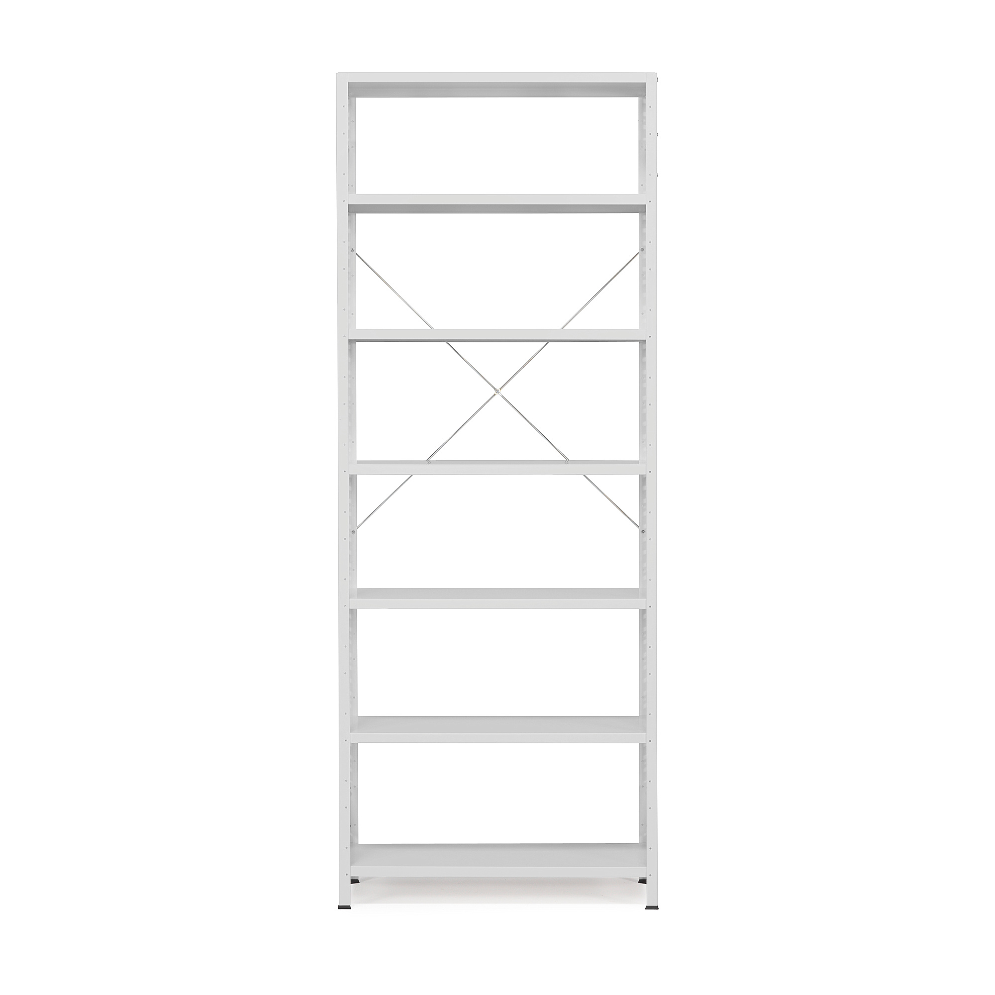 En enkel lagerreol i pulverlakeret metalkonstruktion. Pulverlakeringen giver en slidstærk overflade. Reolen er nem at samle uden brug af skruer og bolte - hægt blot hylderne fast i valgfri højde mellem de fire hyldestolper.Hylderne er lette at justere i højden med 40 mm's interval for at få maksimal fleksibilitet. De er forsynet med kraftige forstærkningsskinner på undersiden. Reolen leveres med fødder, der beskytter gulvet mod ridser.Du kan let skabe et skræddersyet reolsystem ved at komplementere metalreolen med en eller flere påbygningssektioner og ekstra hylder. Påbygningssektionerne er designet til pladsbesparende montering direkte på grundsektionens gavle.