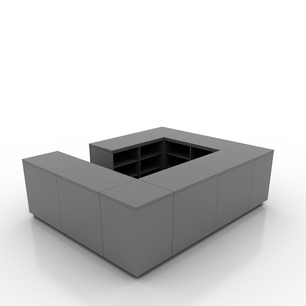 Stor butiksdisk med 4-sidet betjening | Mørk grå | Udvendige mål 300x240 cm | Leveres i moduler i 60, 90 og 120 cm Mørk grå Udvendige mål 300x240 cm Leveres i moduler i 60, 90 og 120 cm